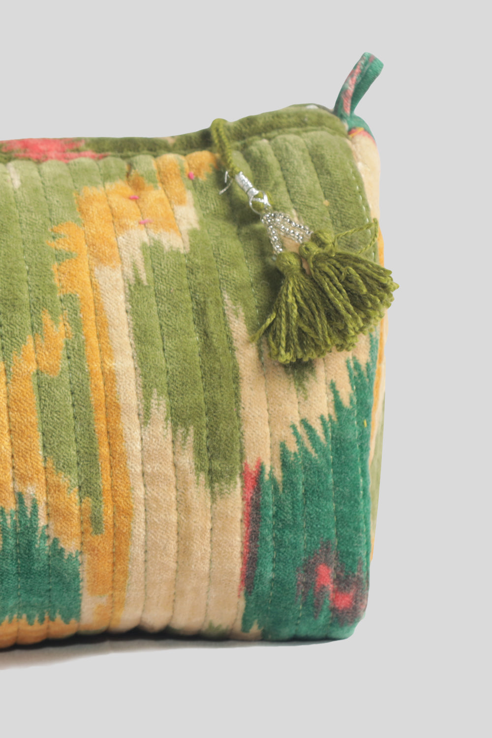 Neceser de terciopelo Quilted Verde Estampado Mediano